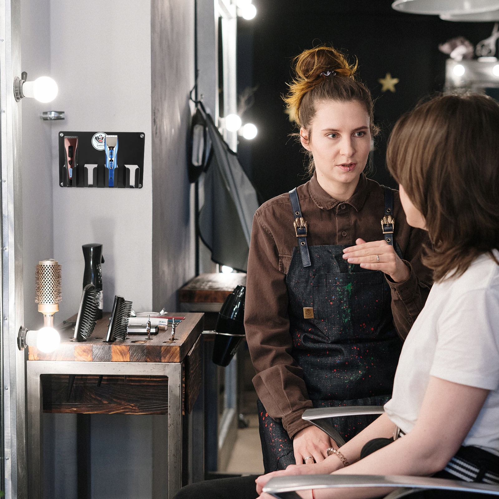 ✅ Це електрична ручка для зберігання різака в преміум -салоні перукаря, підходить для утримання інструментів укладання волосся у вітальні, з простим дизайном та міцною структурою. Він підтримує акуратні гребінці в коробці, хороший вибір для перукаря та перукаря. Матеріал ПП виготовлений, довговічний і практичний, без запаху і довговічний.