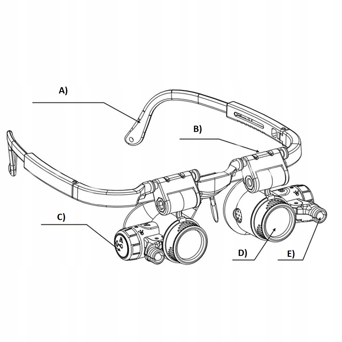 Світлодіодне освітлення: окуляри оснащені двома джерелами світла, ви можете перемикати джерело світла, повертаючи перемикач, і ви можете регулювати положення світлодіодного підсвічування вгору та вниз для досягнення найкращого ефекту точного використання.