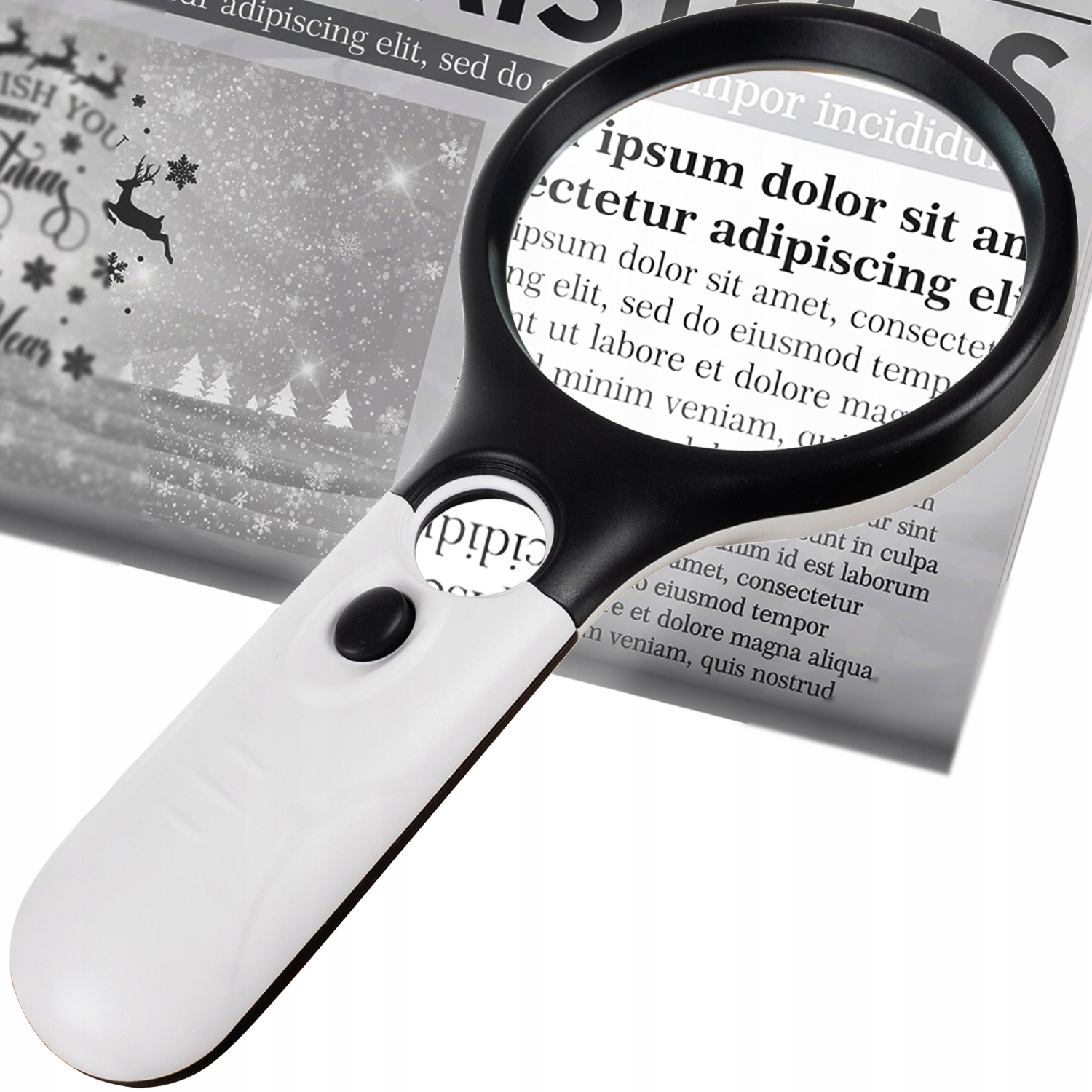 - ВИСОКОЯКІСНИЙ КОРПУС - збільшувальне скло має міцну та ергономічну ручку, що дозволяє зручно тримати її під час використання. Ручка була ретельно розроблена, щоб зручно розміститися в руці, забезпечуючи легкість маневрування та зменшуючи напругу під час тривалого читання. Якісний корпус запобігає вислизанню лупи з руки. У верхній частині ручки є опуклий перемикач, який дозволяє легко вмикати та вимикати підсвічування одним клацанням миші.