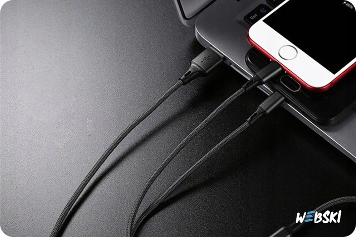 Міцний плетений нейлоновий кабель USB із трьома різними типами роз’ємів серії Webski PRO.