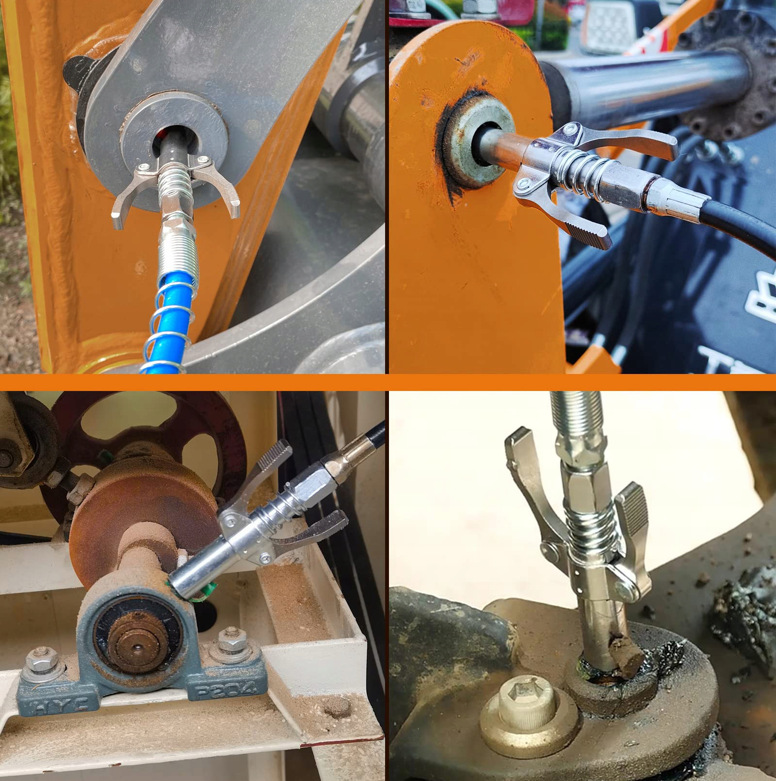 Працює з усіма типами мастильних пістолетів: пневматичними, ручними та електричними. Підходить для броньованих карданних валів, валів, збиральних агрегатів, U-подібних ущільнень та інших врізних насадок. Підходить для всіх машин для мастила на будівельних майданчиках, шахтах, фермах, у лісах, компаніях з технічного обслуговування чи майстернях.