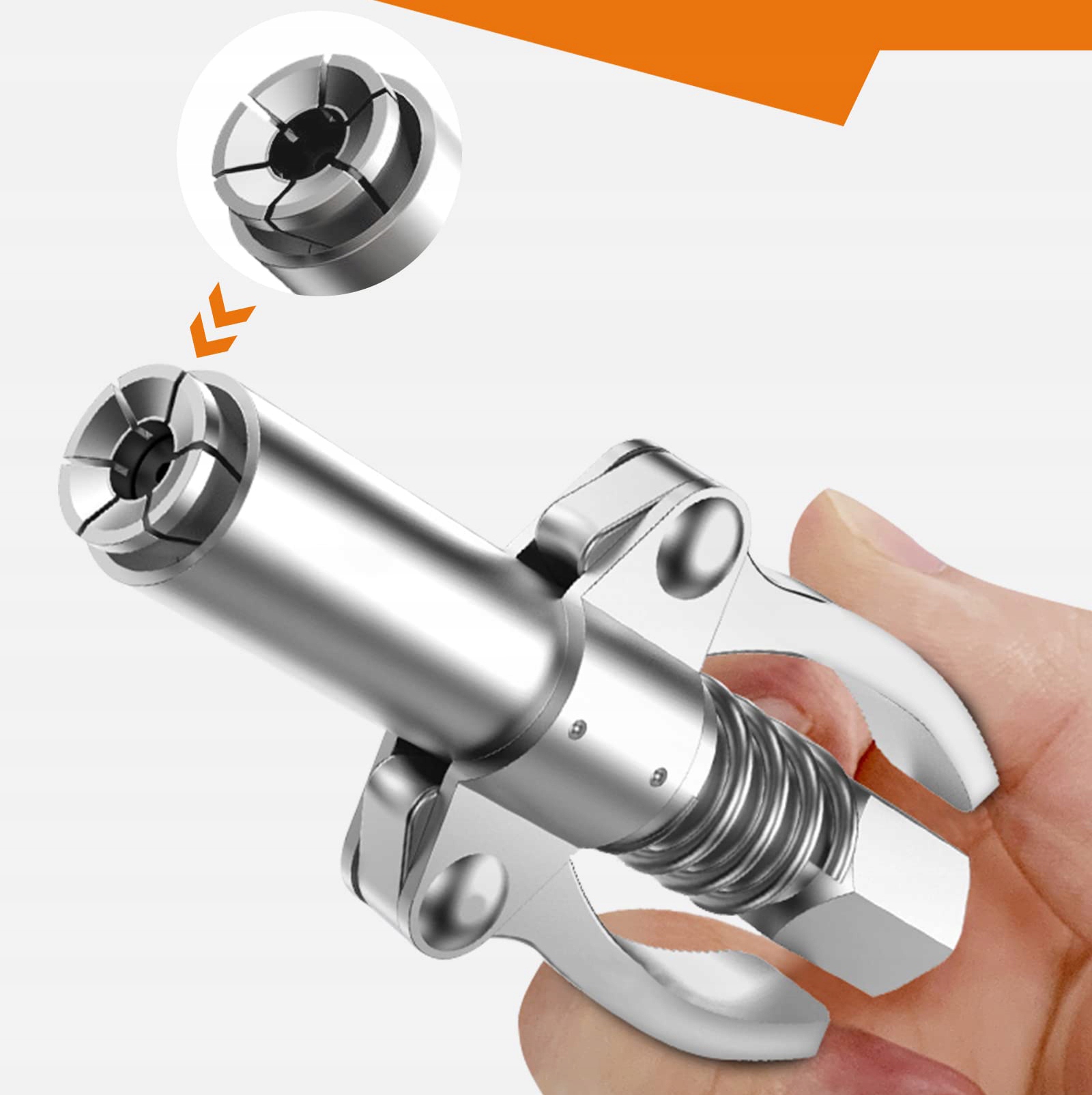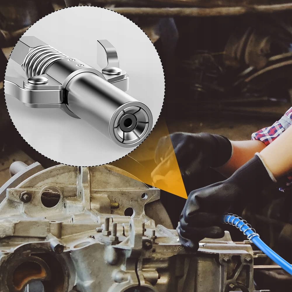Ця насадка виготовлена з високоякісної нержавіючої сталі для Мастильний пістолет гнучкий, щоб забезпечити плавне ковзання під час використання та стабільну роботу та працює з усіма типами мастила