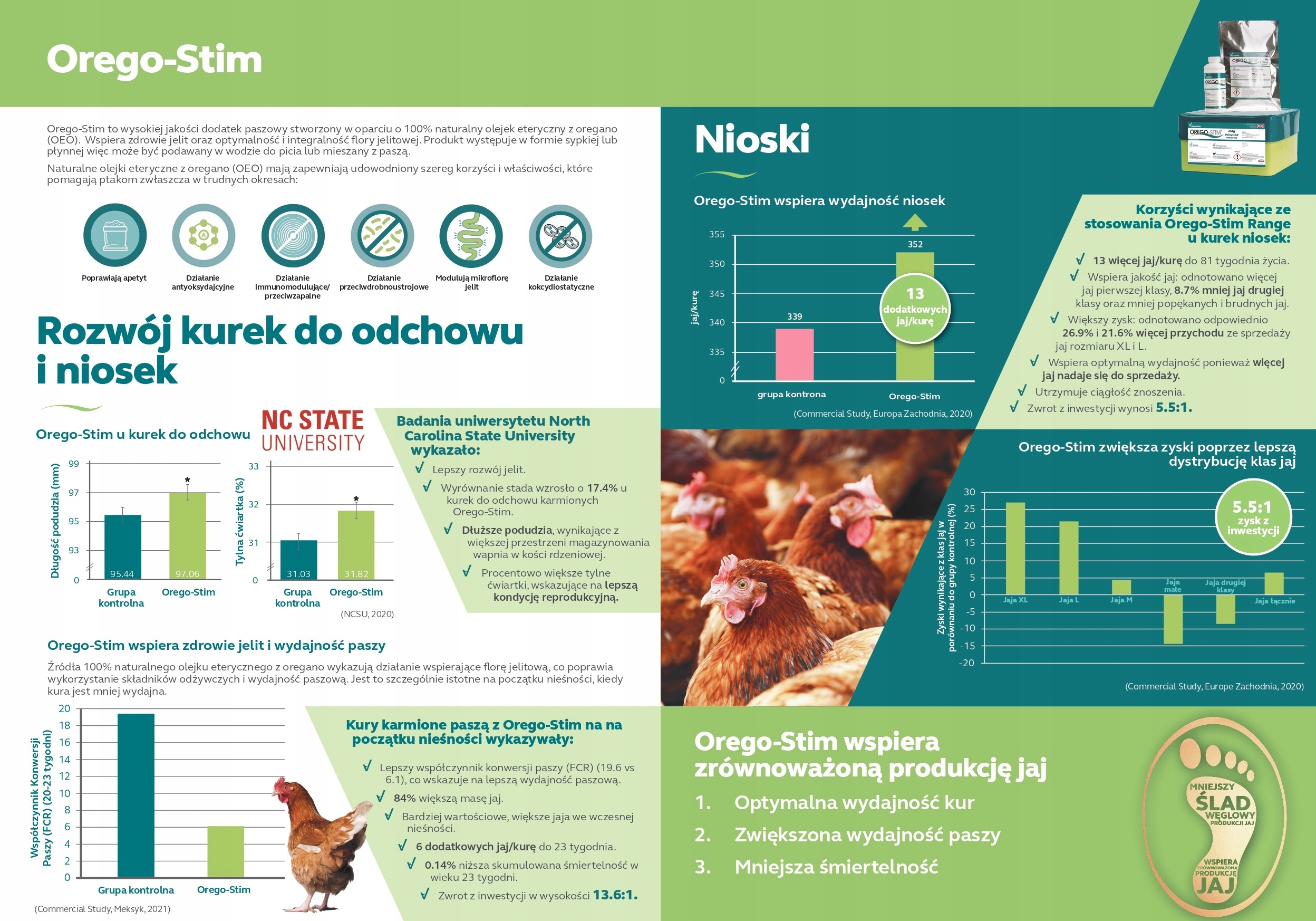 Продукт має сильні антиоксидантні та антибактеріальні властивості. Значно підвищує імунітет тварин, позитивно впливає на апетит і перетравність корму на критичних етапах розвитку. Він піклується про здоров'я кишечника і тим самим сприяє підвищенню продуктивності тварин. Це чудова підтримка під час стресу.