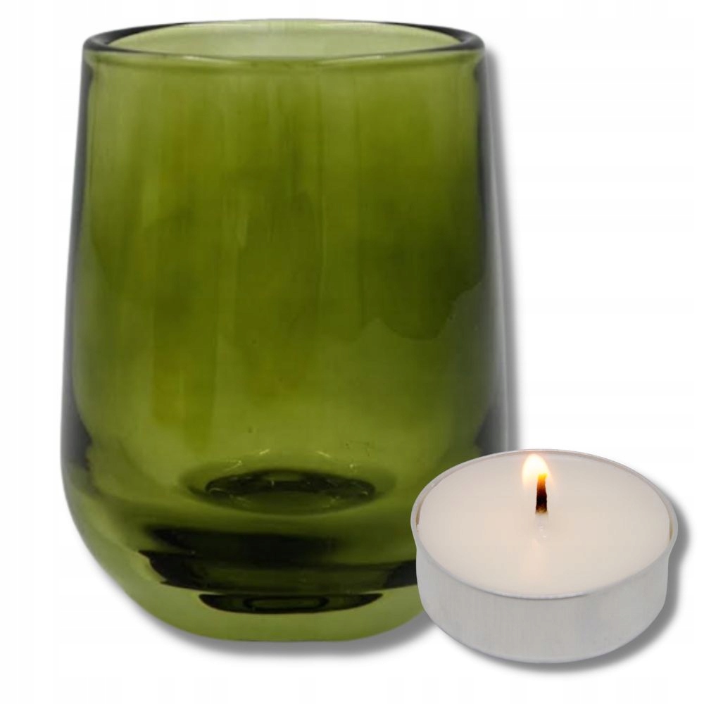 ЗЕЛЕНА СКЛЯНА ПІДСВІЧНИКА, важка чайна свічка