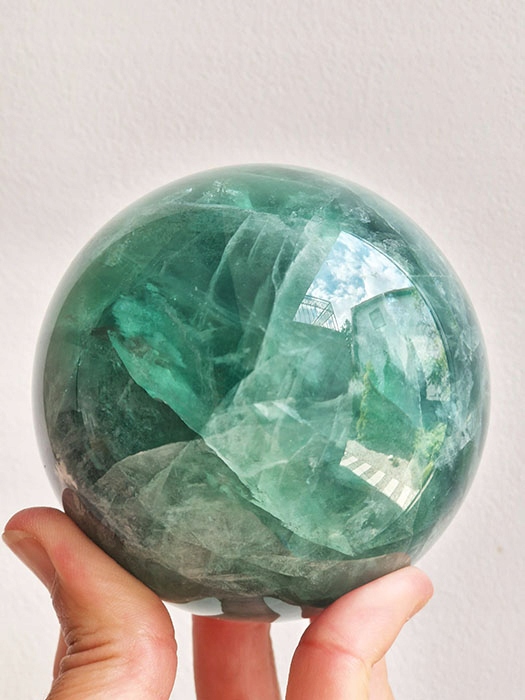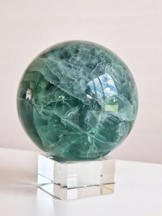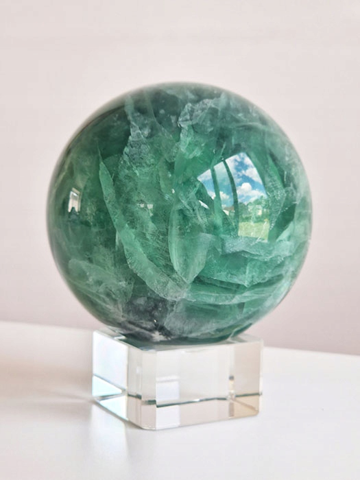 Ця красива куля із зеленого флюориту приносить мир, який підтримує життя, дозволяючи нам встановлювати позитивні стосунки з навколишнім світом.