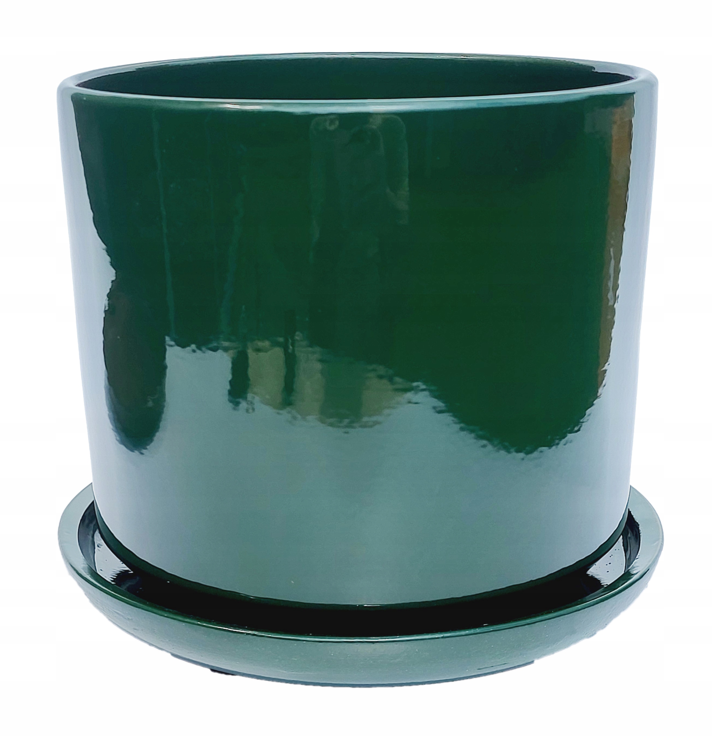 ЗЕЛЕНИЙ КЕРАМІЧНИЙ ГОРЩИК ДЛЯ КВІТОК ГЛЯНЦЕВИЙ циліндр з підставкою