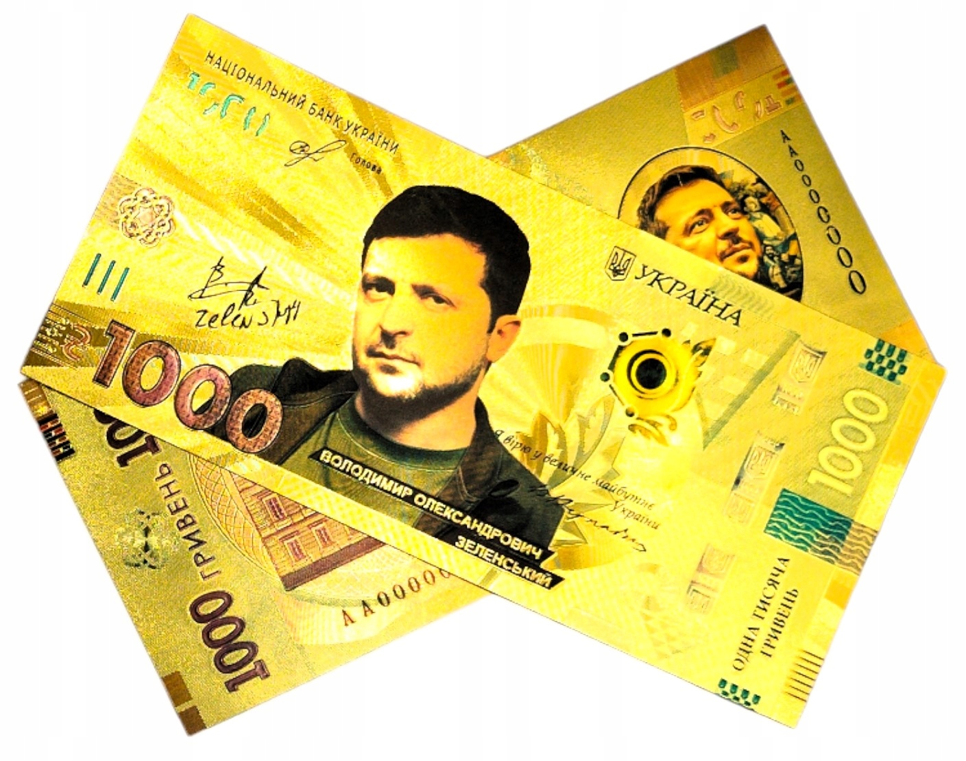 ПОЗОЛОЧЕНА БАНКНОТА НОМІНАЛОМ 1000 ГРИВЕНЬ ВОЛОДИМИР ЗЕЛЕНСЬКИЙ