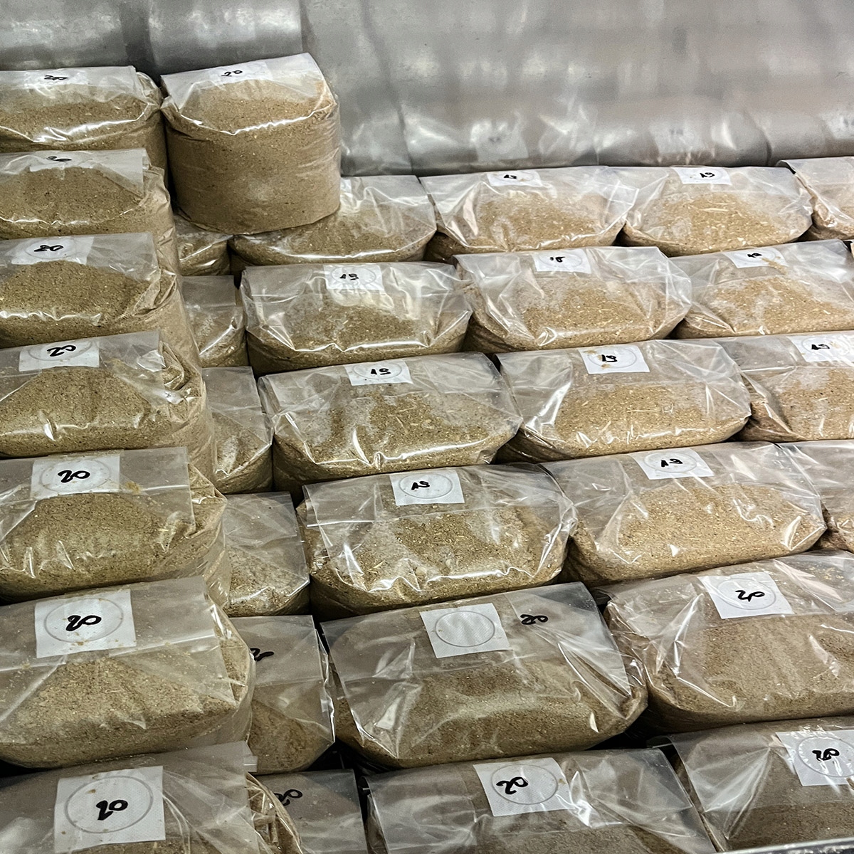 Основа стерилізованої, невакцинованої ґрунту - це букова тирса з поживними речовинами, необхідними для зростання міцелію. Підкладка поміщають у мішок з мікрофільтром. Спеціальна мікрофільтр дозволяє обміняти газом між землею та зовнішнім середовищем. Після вакцинації землі це дозволяє міцелію дихати під час інкубаційного процесу, і в той же час, як ефективний бар'єр, він захищає його від проникнення шкідливих мікроорганізмів до його інтер'єру.
