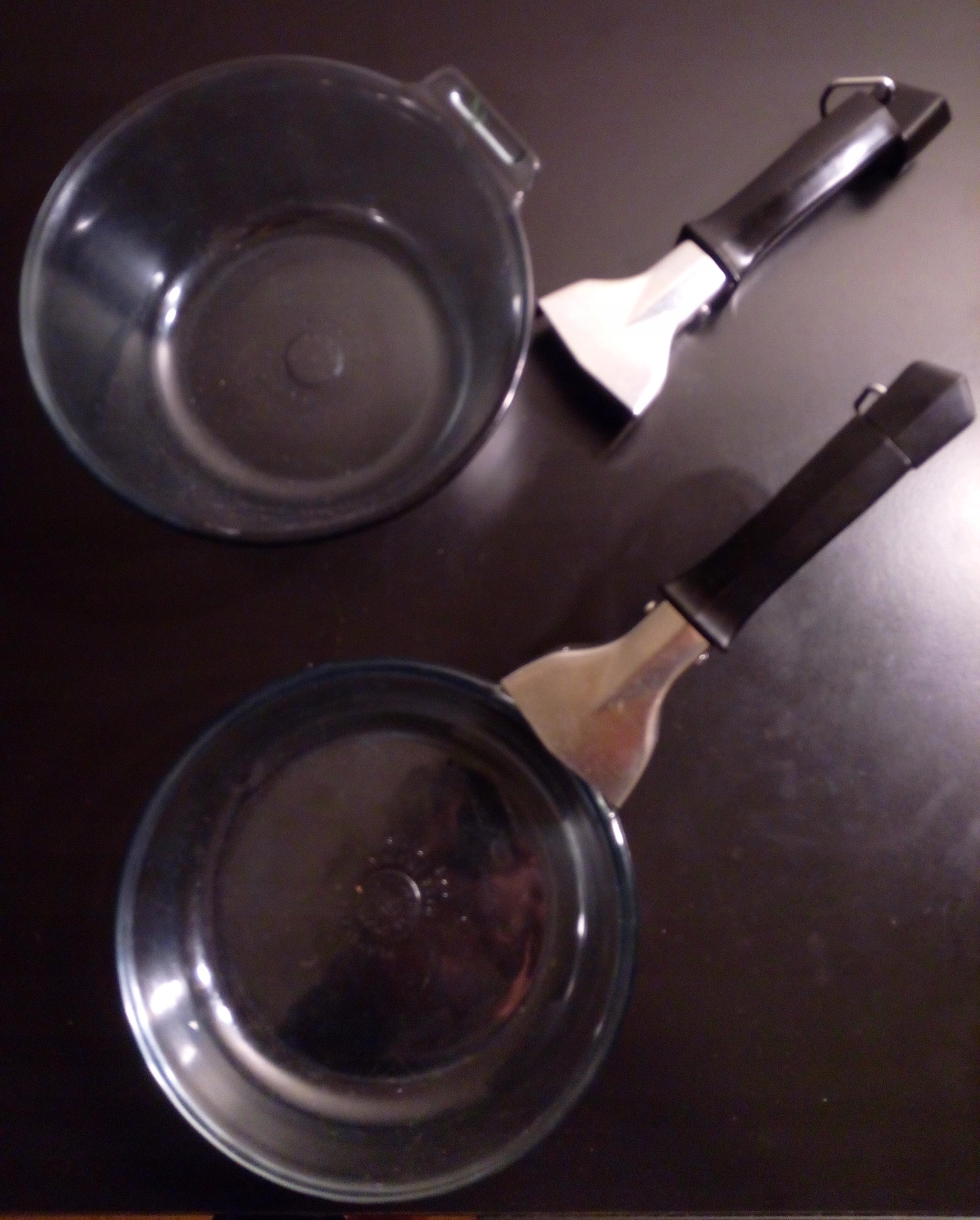 ZESATAW RONDEL + PATELNIA PYREX Z ODCZEPIANYMI UCHWYTAMI LATA 50