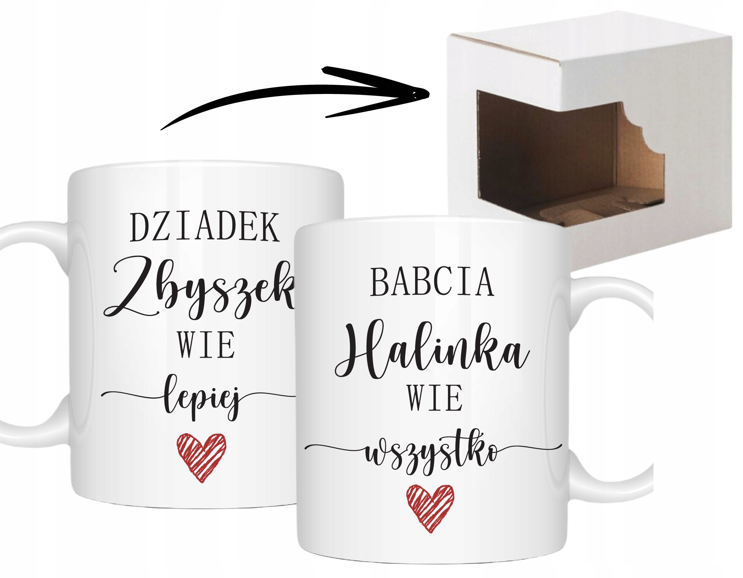 Zestaw 2 kubków BABCIA i DZIADEK dzień BABCI i DZIADKA wie lepiej IMIONA