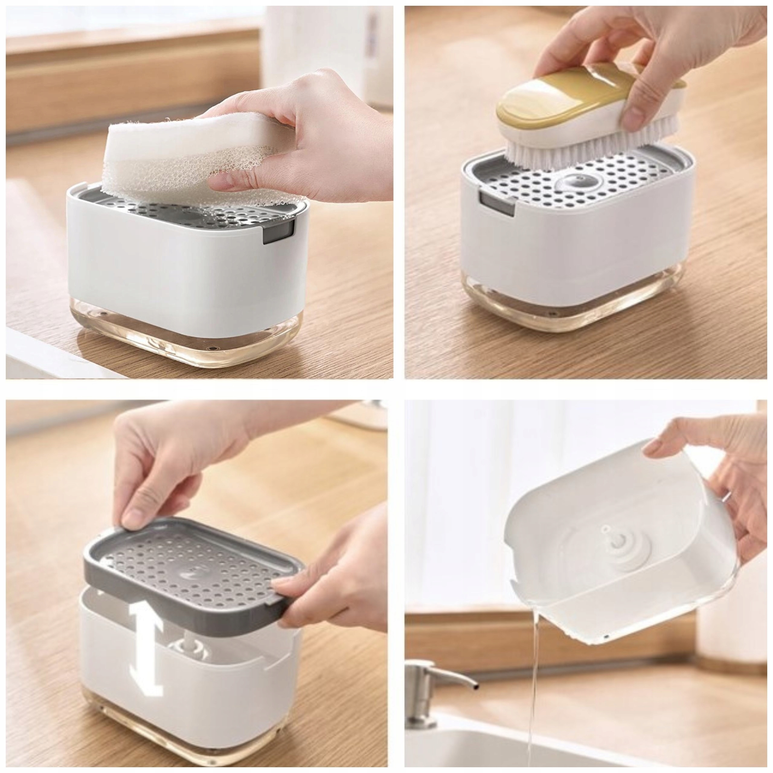 ➡ простота використання: ергономічні рішення дозволяють використовувати організатор однією рукою. Інтуїтивне придбання рідини та легке поглинання губкою усувають проблему повороту пляшок.
