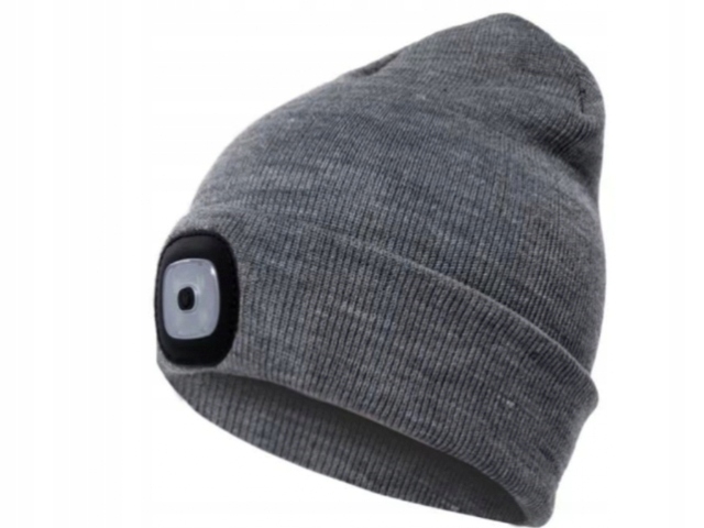 Зимова шапка, утеплена світлодіодним ліхтариком сірий USB Beanie
