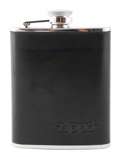 Красива фляга з нержавіючої сталі, обтягнута натуральною чорною шкірою з вигравіруваним логотипом Zippo - гарантія найкращої якості! Має щільно закручується кришку і злегка вигнуту форму, завдяки чому ідеально лежить в руці. Пропонується в екологічно чистій упаковці. Чудова ідея для подарунка!