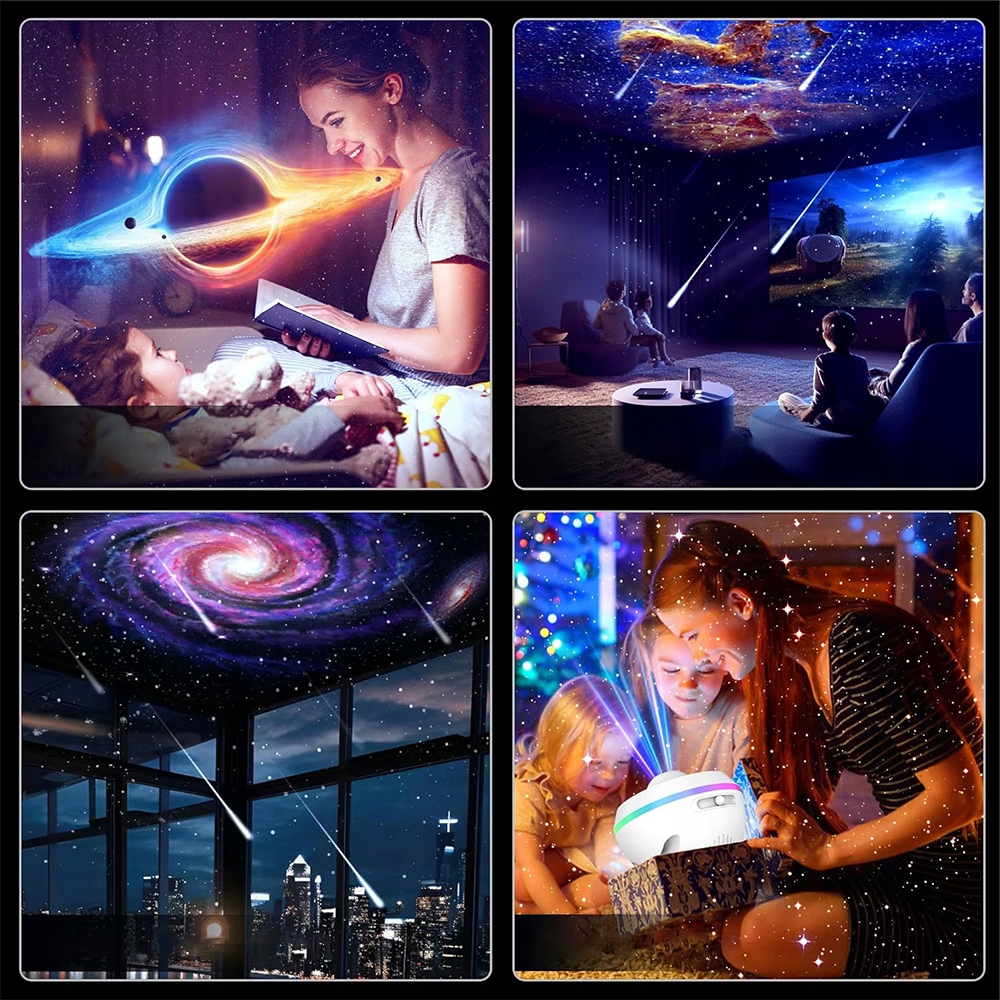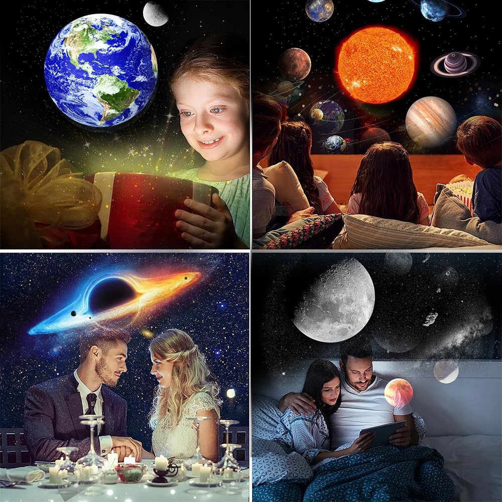 - Освітлюйте свій життєвий простір завдяки нашому найсучаснішим проектором Галактики з 13 захоплюючими сценами, такими як Місяць (вбудована), Сонячна система, Земля, Чорна Діра, Галактика Мілкі Шлях, Оріон Галактика, Оріон Туман, як і диносаври, Марін, Різдво та Валентін.