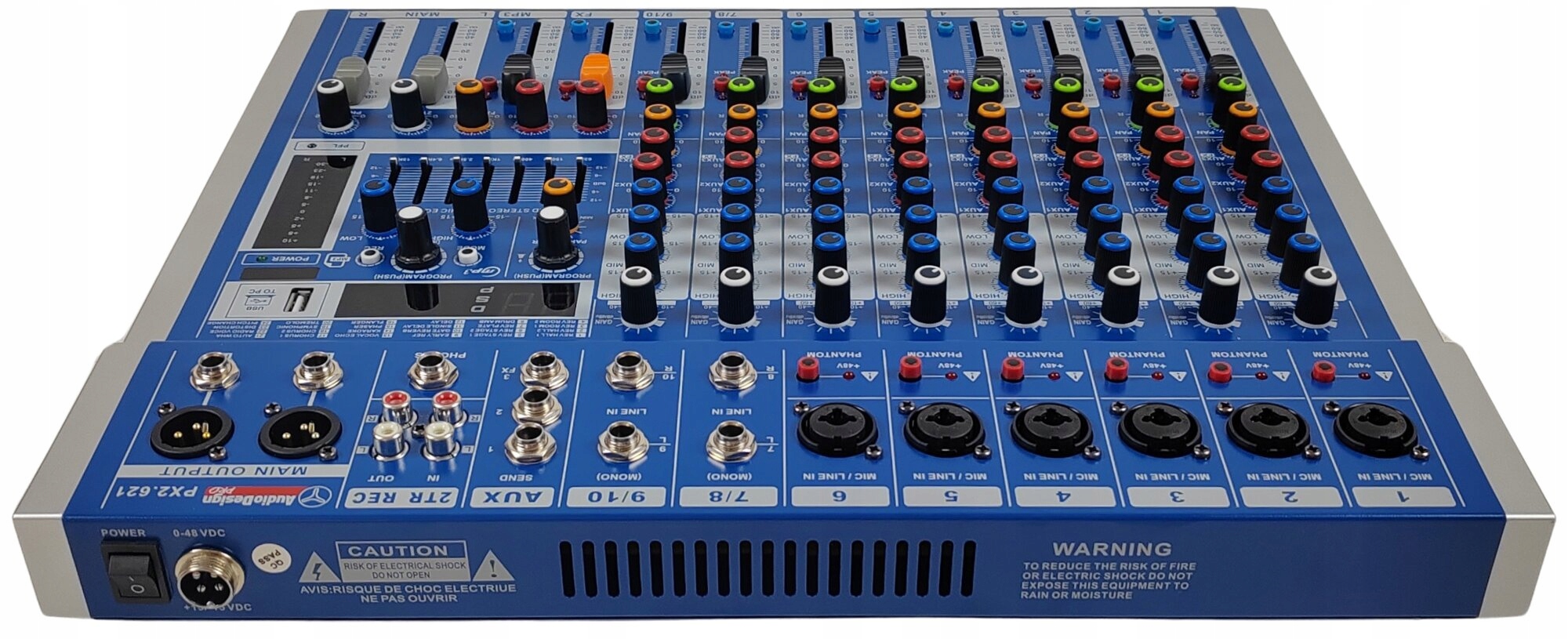змішувач, 10 каналів, повзунки, вбудований MP3/WAV-програвач та USB-дисковий диктофон, Bluetooth, 6x Mono, 2x стерео, фантомний живлення з опцією перемикання на моно входах, 24 ефекти DSP, 7-смугаста графічна коректор, 3x Aux, навушники навушника в, розміри 410 x 349 x 50 мм, вагою 3.1 кг.