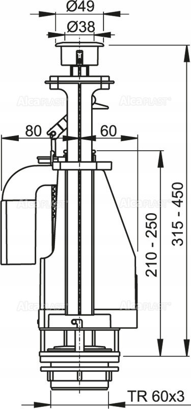ЗМИВНИЙ КЛАПАН КНОПКА ЗМИВУ УНІТАЗУ 3/6 ALCAPLAS