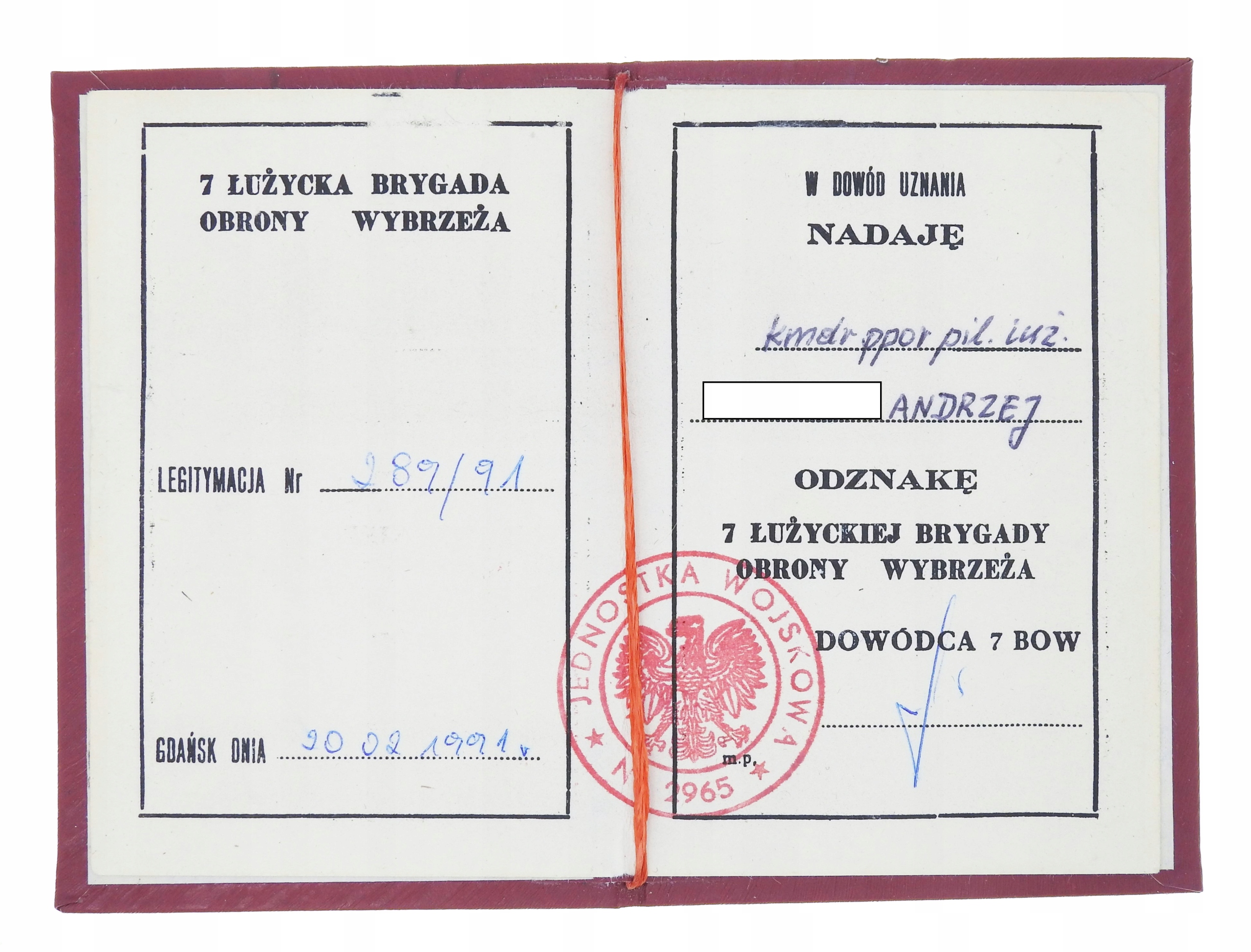 Значок 7 Лусатська прибережна бригада оборони + посвідчення особи (1)
