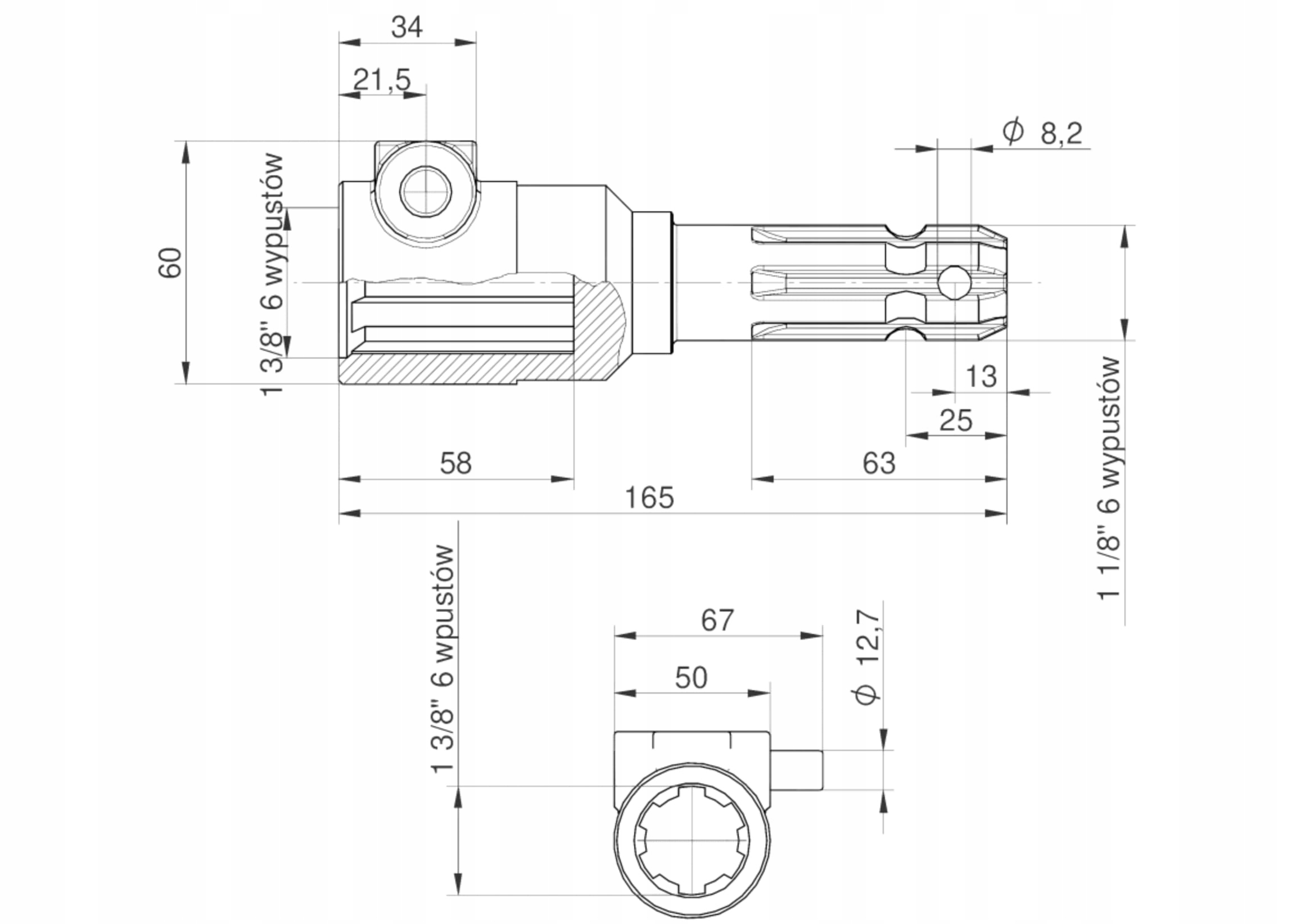 Зниження адаптера для роликів WOM для оправки 1 3/8 "6 канавок для валу 1 1/8"