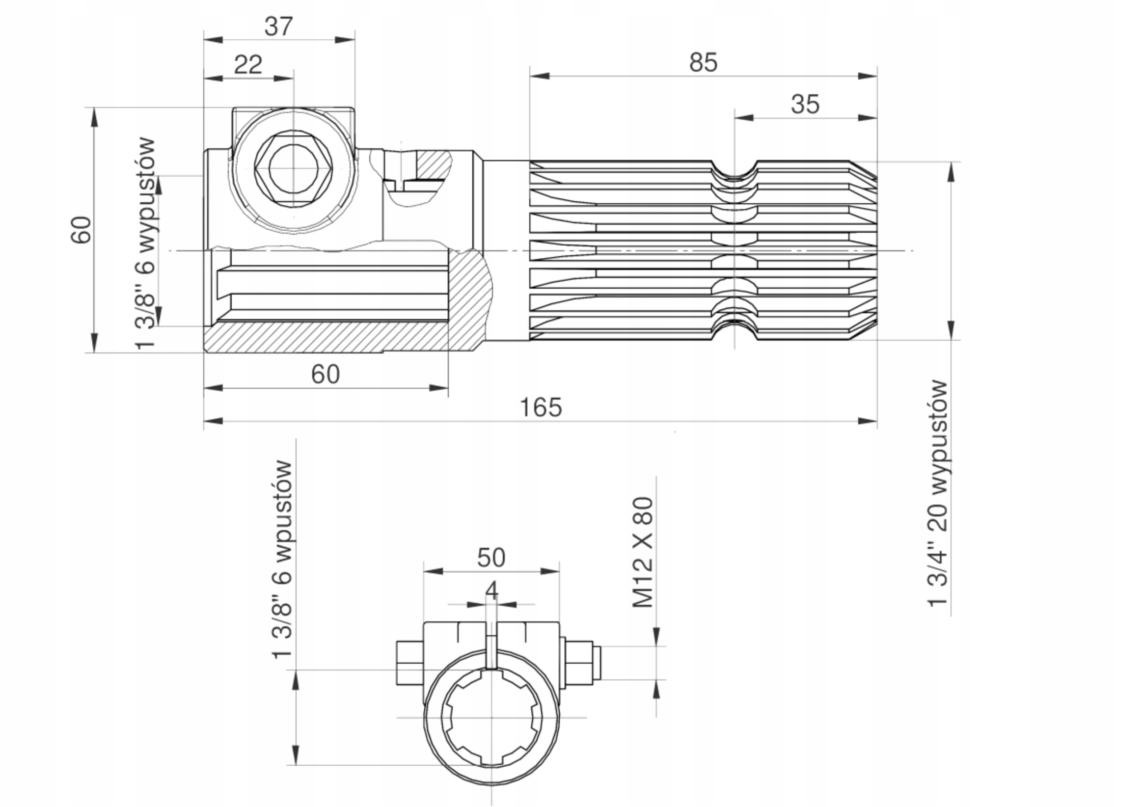 Зниження адаптера WOM ROLLER для 1 3/8 "гвинт" 6 канавок для валу 1 3/4 "20 WPU