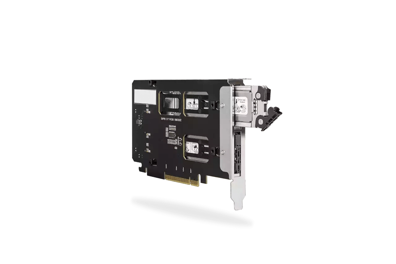 - Внутрішній інтерфейс: 1 x PCIe 3.0 або 4.0 x8 / x16 (для материнської плати потрібні слоти PCIe x8, розділені на x4/x4, або слоти PCIe x16, розділені на x4/x4/x4/x4)< /li>