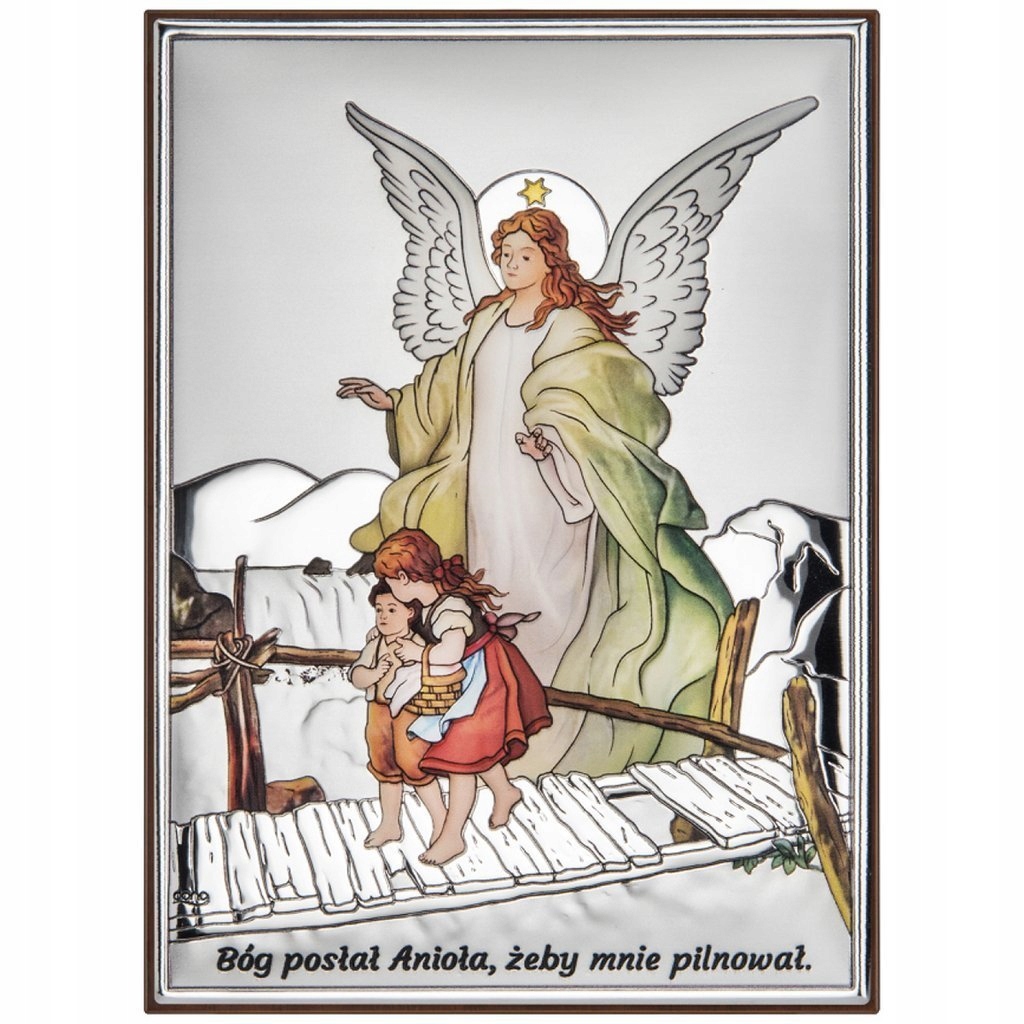 Срібна картина із зображенням Ангела на пішохідному містку, який охороняє дітей, - чудовий подарунок на Хрещення. На передній частині зображення фабрично вигравірувано напис: «Бог послав ангела, щоб стерегти мене».