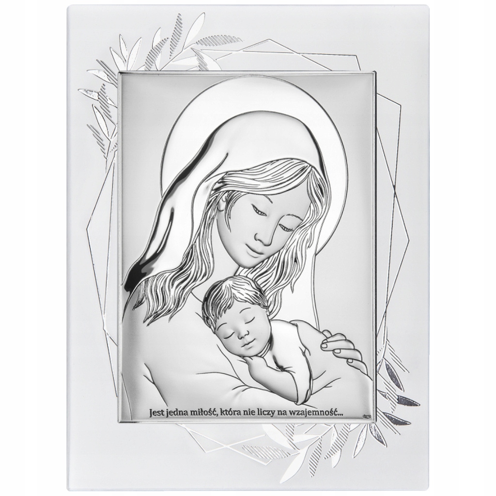 Срібна картина Богородиця з Немовлям стане чудовим сувеніром до таких важливих свят у житті кожної людини, як хрещення, миропомазання, причастя, вінчання, річниця весілля, священицькі свячення. Тонка і навіть майстерна передача деталей, таких як заломлення матеріалу, ореоли або вирази обличчя персонажів, порадує кожного щасливого покупця чи одержувача. На лицьовій стороні картини фабрично викарбувано напис: «Є одна любов, яка не розраховує на взаємність...».