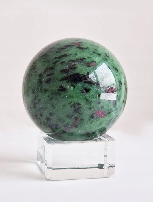Zoisyt з рубіновим відшліфованим кулею з підставкою 361g 5,9 см 1 шт