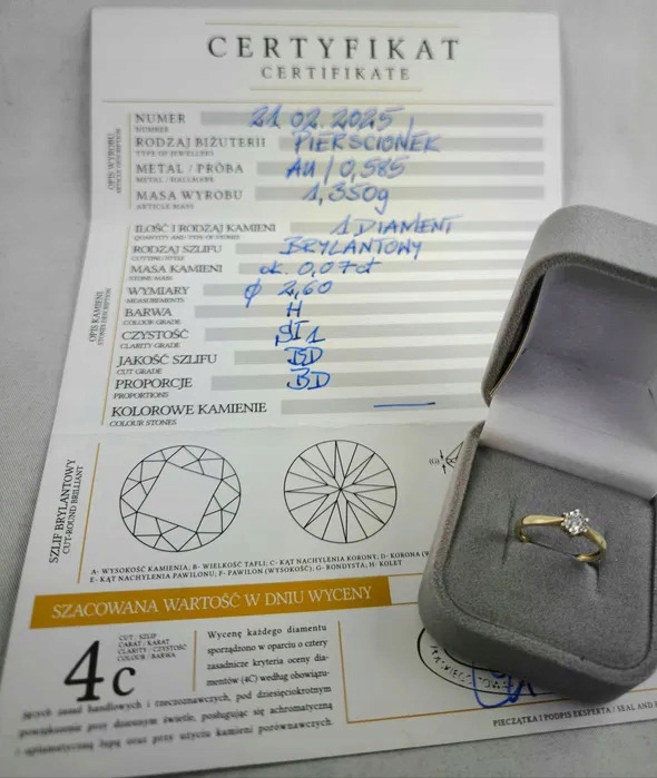 Золоте обручку з 14k/585 Діамант - Сертифікат