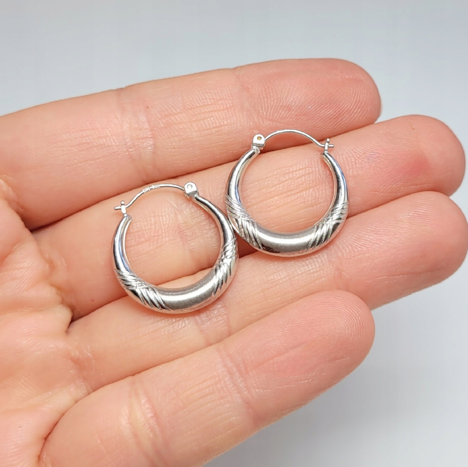 Предметом продажу є сережки-кільця, виготовлені з білого золота, з делікатно декорованою поверхнею; сережки застібаються на застібку