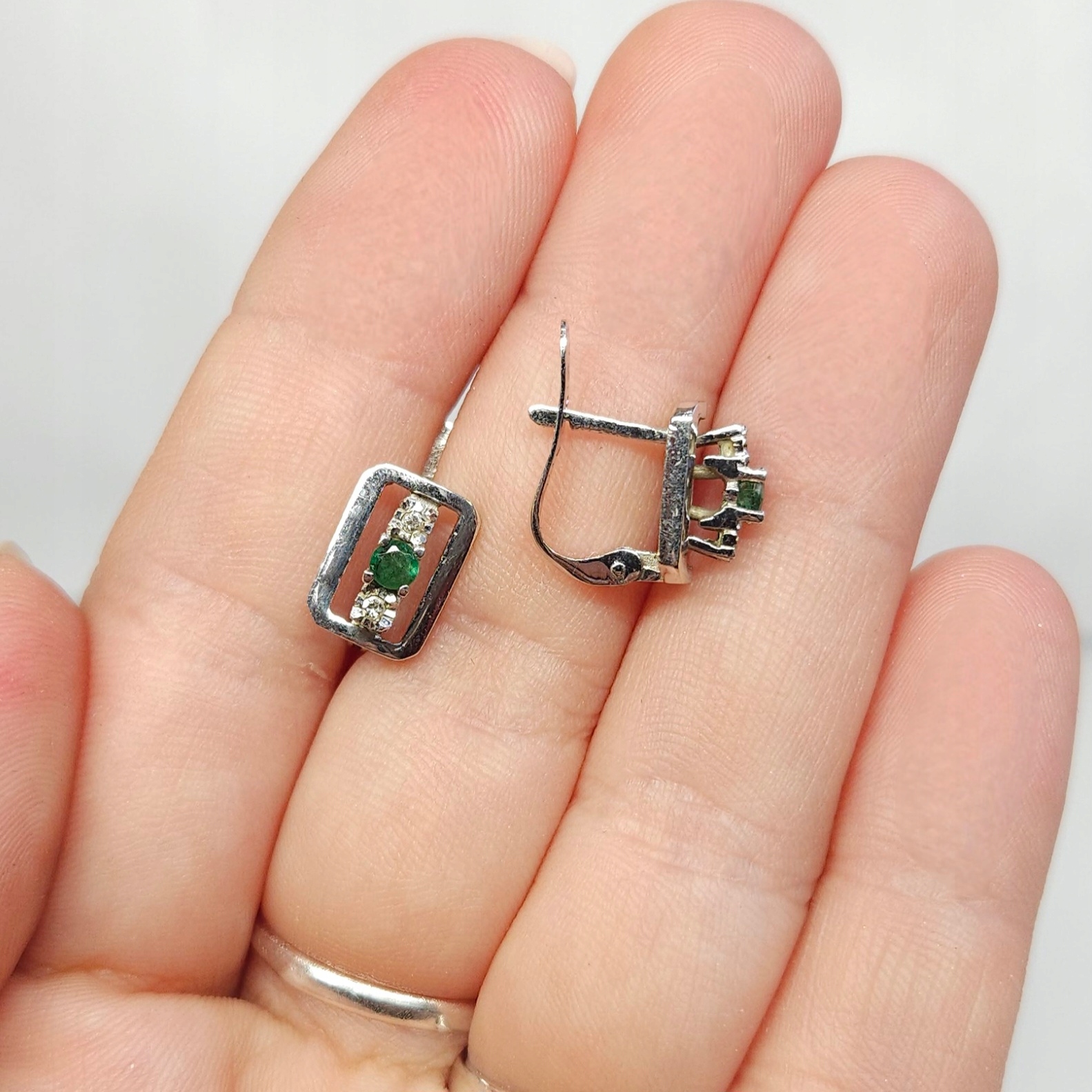 Предметом продажу є сережки з білого золота, прикрашені смарагдами - 2 шт. ł ~ 0,2 карат і діаманти - 4 шт. ł ~ 0,04 карата