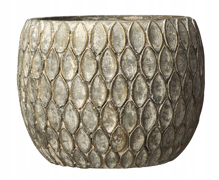 Цікавий горщик , виготовлений з цементу у відтінках золота та сірого та бежевого. елегантний та цікавий дизайн нагадування листя або сльози буде тонко прикрасити та підкреслювати характер інтер'єру, саду та балкона . У той же час, це буде естетичне та привернення до очей.