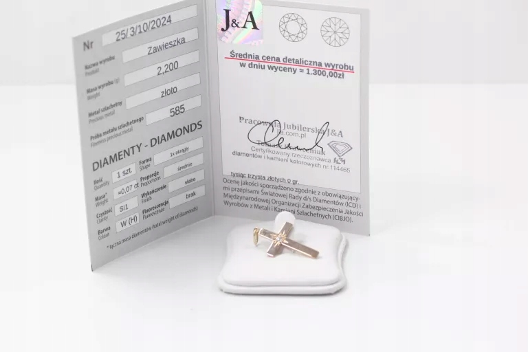 Для кільце Додаємо Сертифікат з оцінкою вартості виробу приблизно 1300 злотих, виданий ювелірною майстернею J&A.
