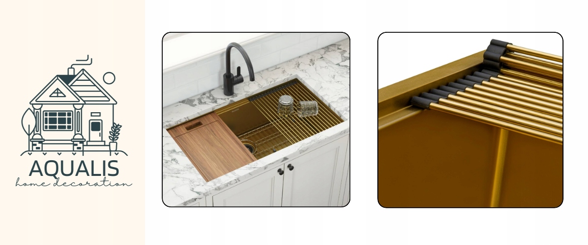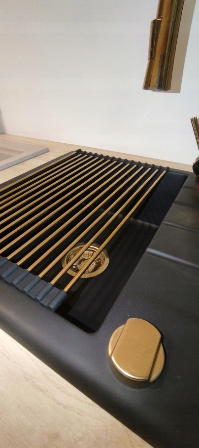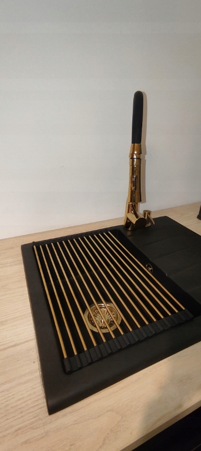 золотистого кольору Наша сушарка для рулони надає кухні елегантний і затишний вигляд, ідеально відповідає останнім тенденціям інтер'єру. Його можна використовувати не тільки для висушування посуду, але і як друшляк, робочий стан над мийкою або гарячими посудами . Надає вашій кухні сучасний і стильний вигляд.