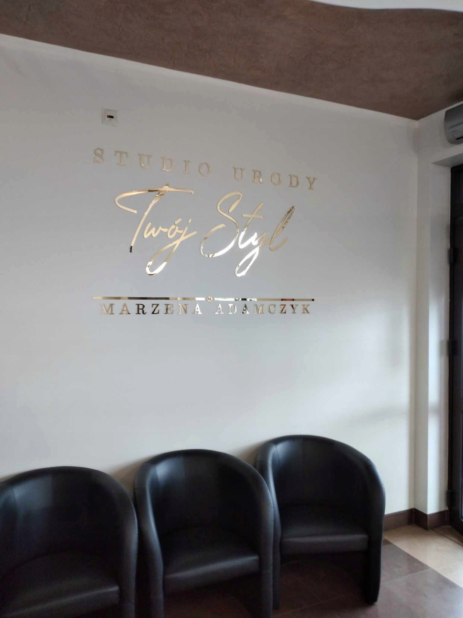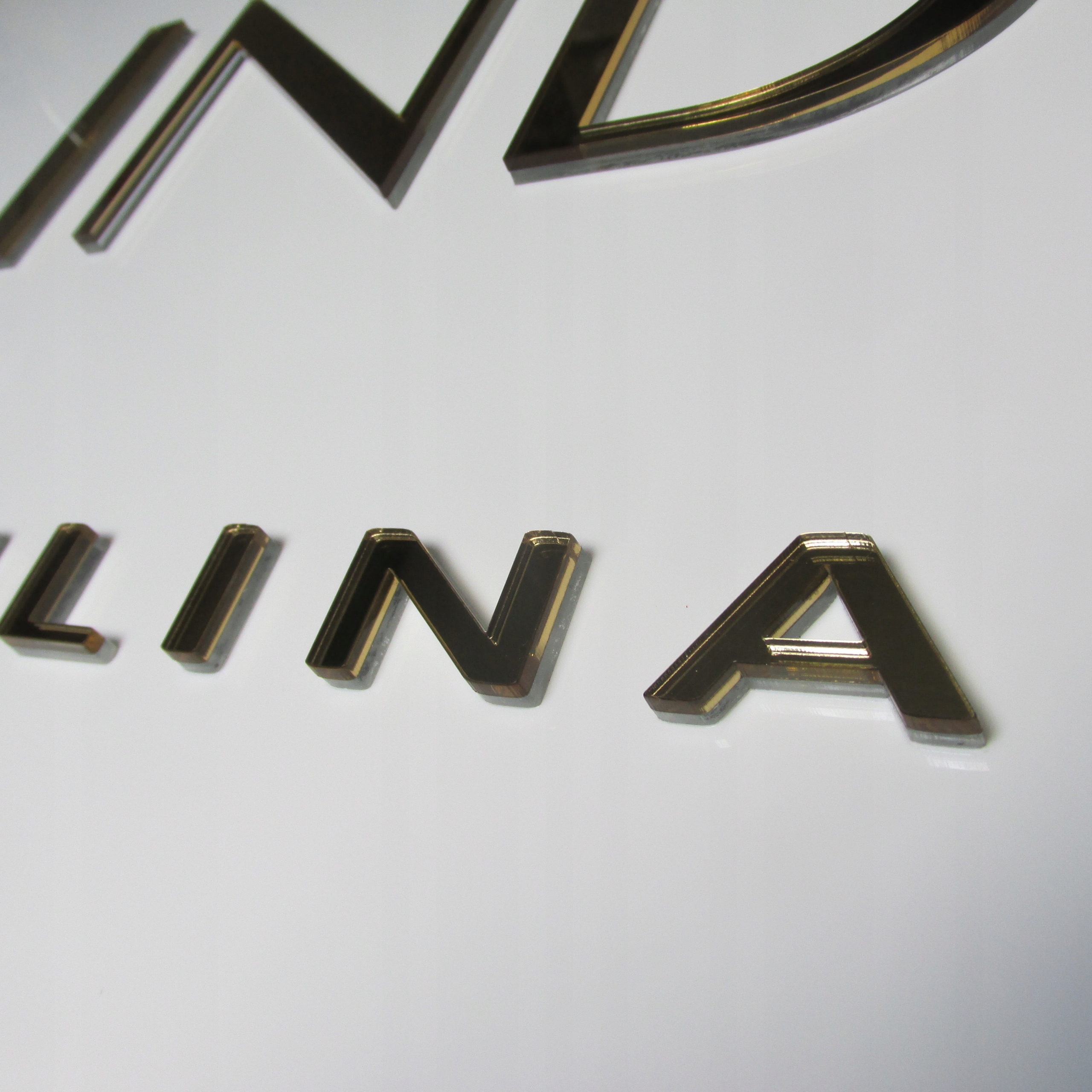 Золотий логотип на стіні, логотип оргскла під лічильником, золоте дзеркало з оргскла, 3D логотип