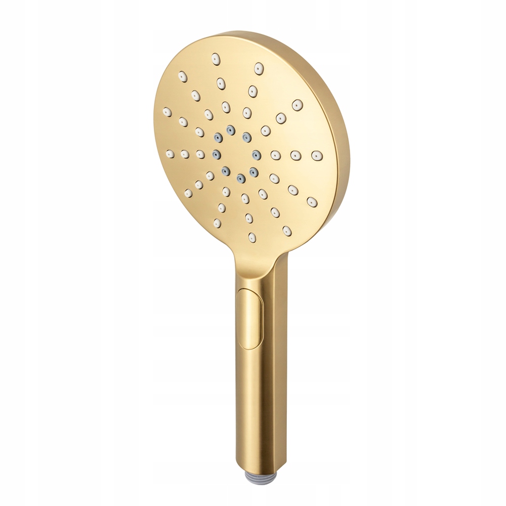 Інтернет-магазин Magiczna-Lazienka пропонує вам душову головку золотого кольору з матовою обробкою. Він оснащений трьома різними потоками води: розпилювачем, туманом та розпиленням + туман. Функції можна змінити в будь -який час, використовуючи практичну кнопку, вбудовану в ручку. Економте до 30% води за рахунок зменшення потоку.
