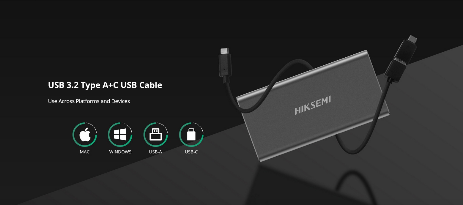 Hiksemi T200N — це портативне та ефективне рішення для тих, хто цінує швидкий доступ до даних і мобільність. Компактний дизайн робить його ідеальним для того, щоб брати з собою в дорогу або зберігати файли на комп’ютері. Роз’єм USB 3.2 Type-C забезпечує високу швидкість передачі даних до 560/510 МБ/с при читанні/записі, що дозволяє миттєво копіювати та переміщувати файли. Він не потребує додаткового джерела живлення, використовує енергію, що подається через USB-порт.