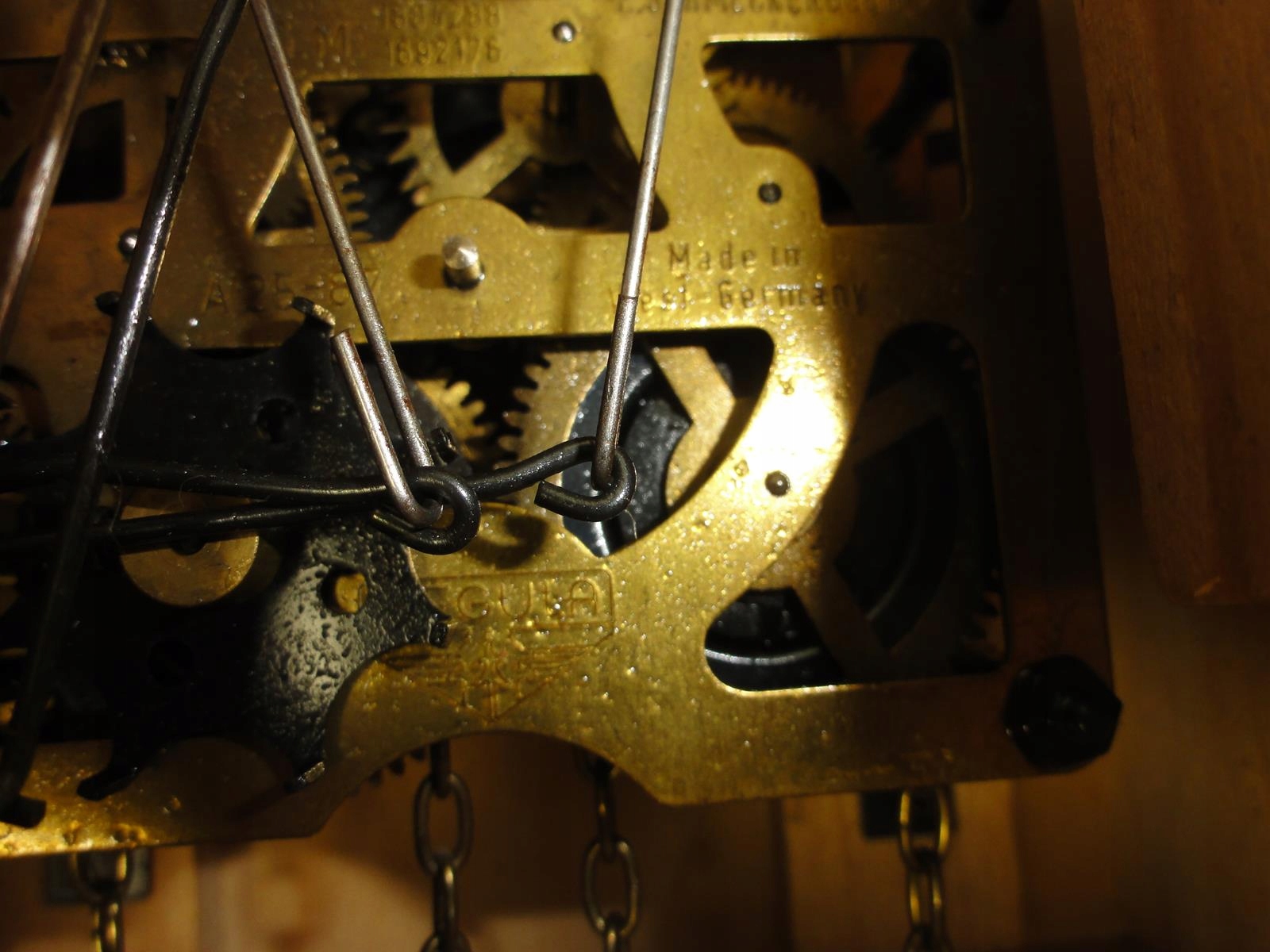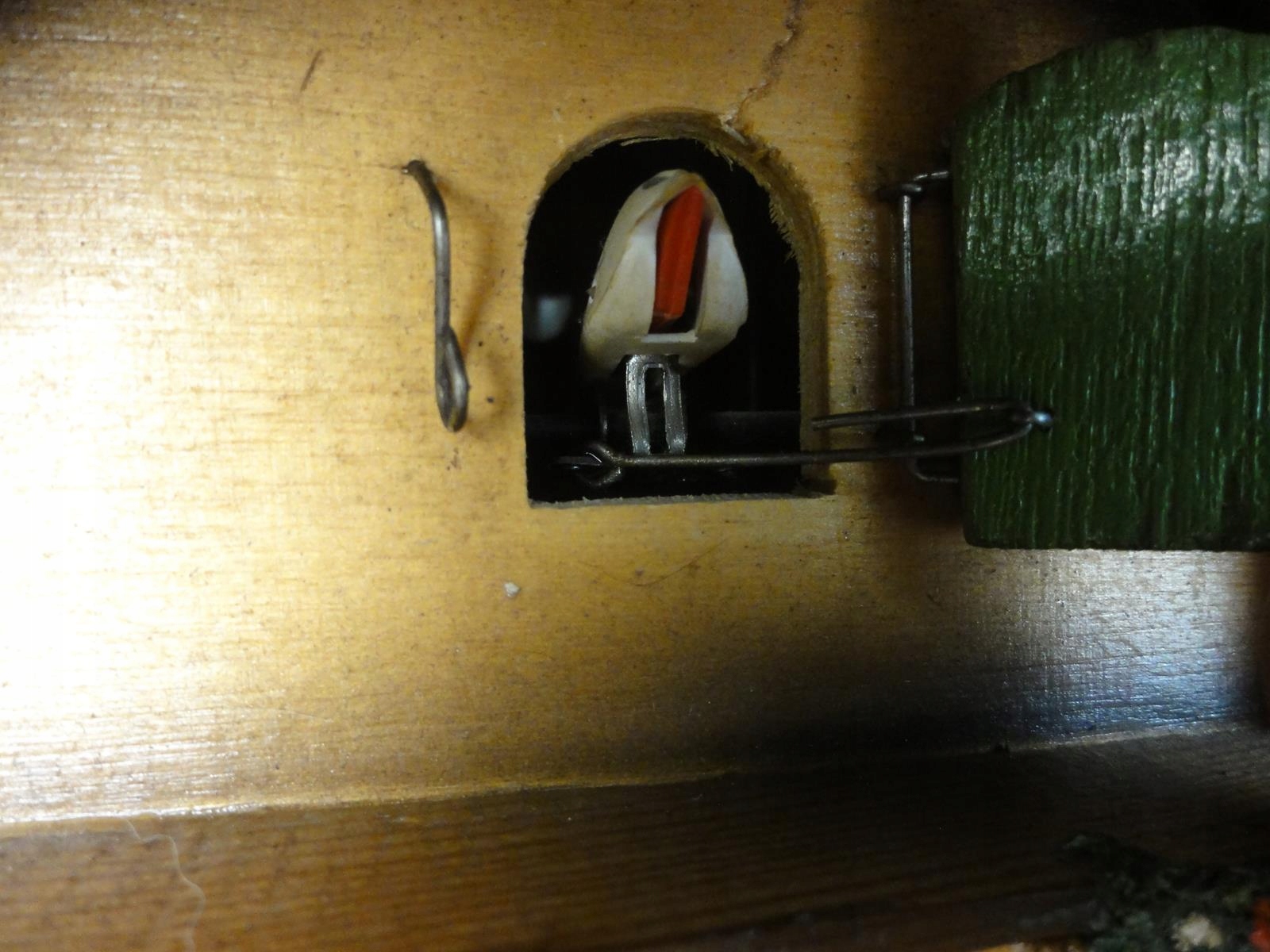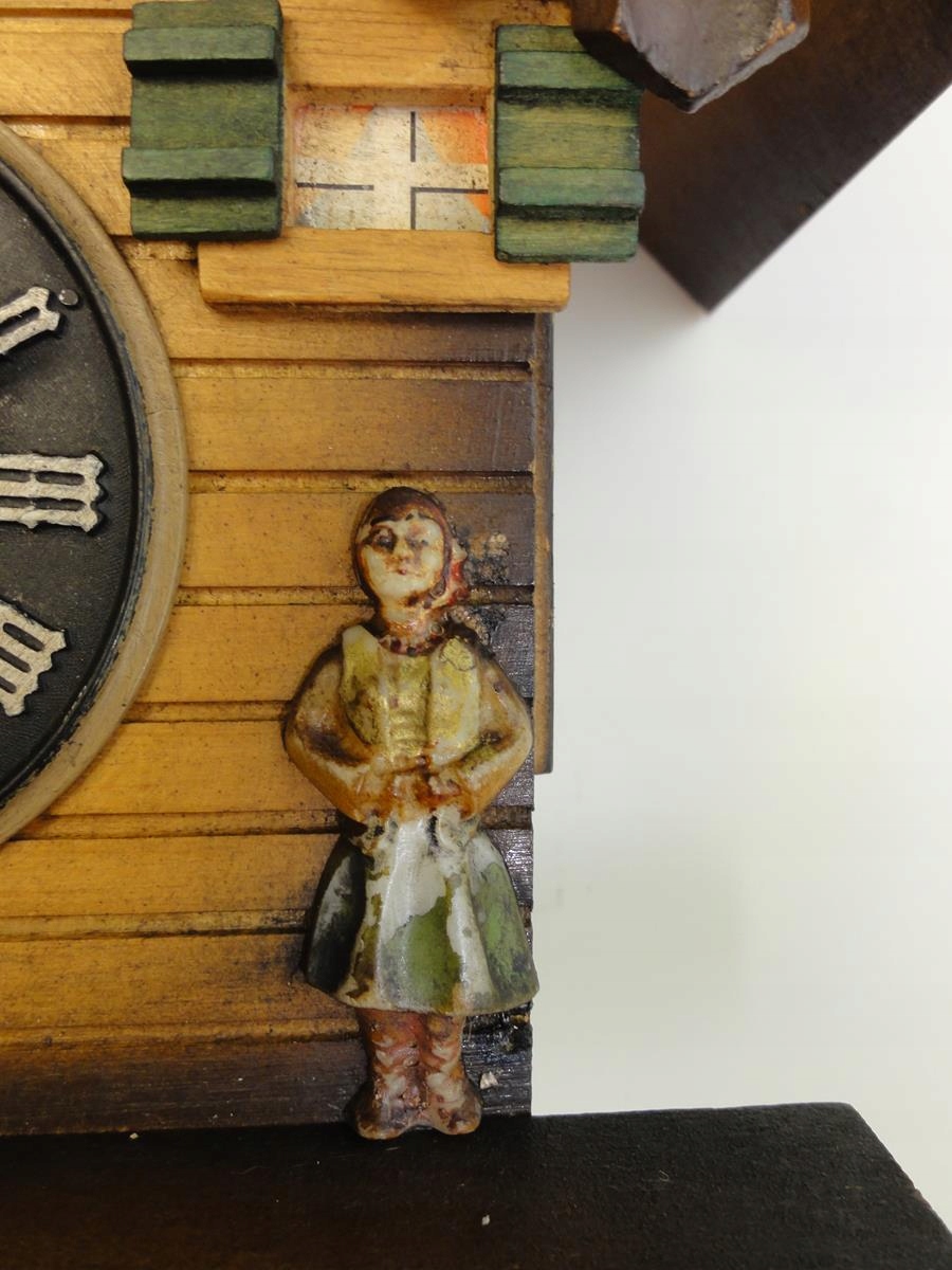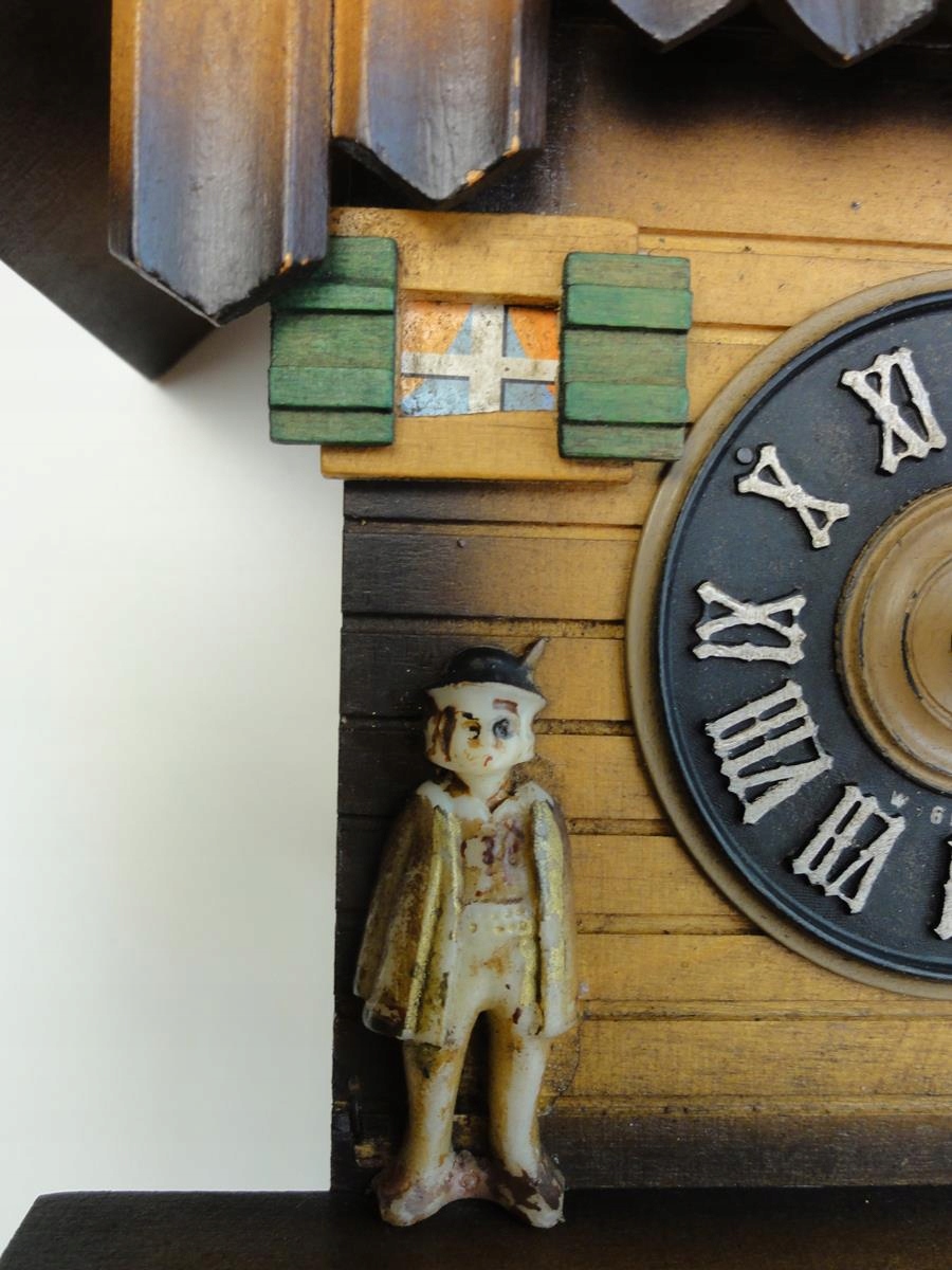 * латунного механізму, з щоденним напруженням, повністю функціональним, повністю функціональним, Повністю функціональний, це йде точно, і половина і повна година оголошує зозулю і побиття гонгу, під час стука в димохід з’являється розгортання димоходу,