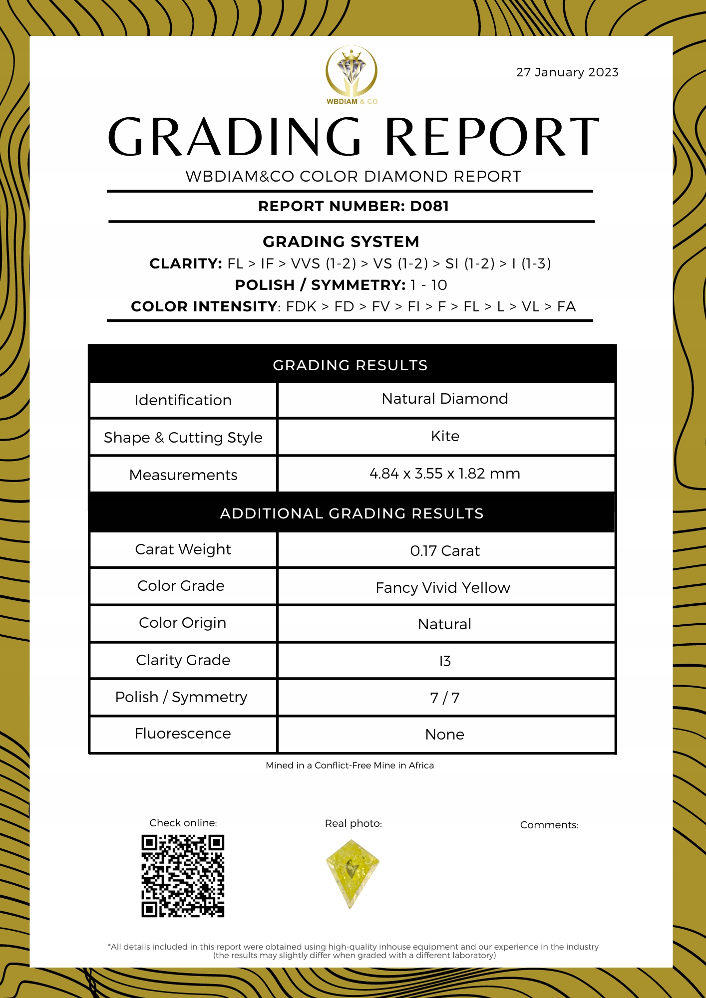 ЗРАЗУ! Природний діамант - 0,17 карата - Жовтий - Кайт - I3
