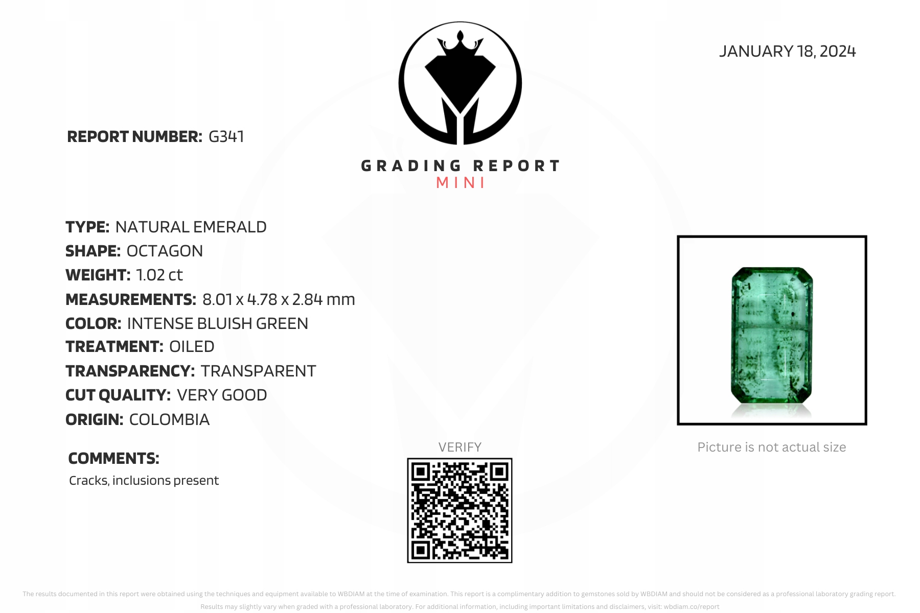 ЗРАЗУ! Смарагд 1.02ct Восьмикутник Колумбія
