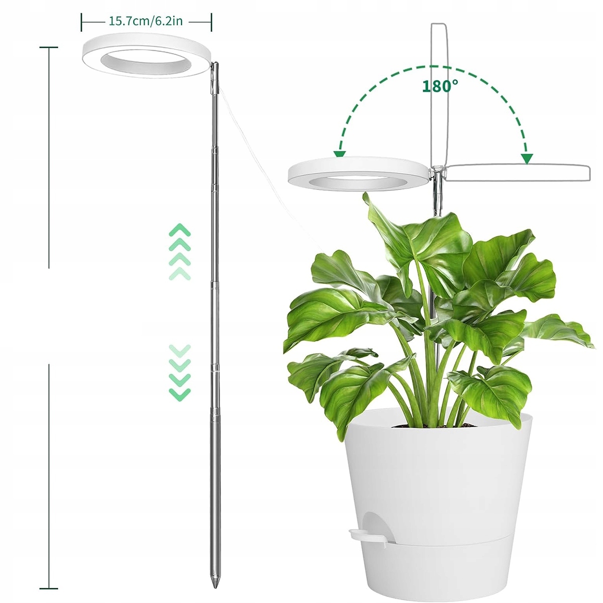 ⭐⭐⭐lampa для світлодіодного кільця повного спектру для домашніх рослин, 28-150 см регульована висота лампа для рослин із 72 світлодіодами, 10 рівнів затемнення, таймер 3/9/12 години до домашніх рослин (білі) ⭐⭐⭐