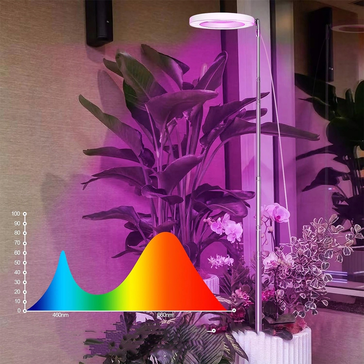 � спектр повного освітлення: Лампа для рослин Юкуке має 72 світлодіодні світильники (включаючи 36 білих світлодіодів, 24 червоні світлодіоди та 12 синіх світлодіодів), ефективно збільшуючи світлові світильники рослинних світильників, тому ви можете використовувати кілька подібних рослин і є ідеальним джерелом для горщиків. Лампа для рослини YouKuke має 72 світлодіодні світильники (включаючи 36 білих світлодіодів, 24 червоні світлодіоди та 12 синіх світлодіодів), ефективно збільшуючи світлову площу рослинної лампи, тому ви можете використовувати її для декількох подібних рослин одночасно і є ідеальним джерелом світла для горщиків. освітлення. Монохромне біле світло підходить для посіву насіння; Червоне, синє та біле світло може збільшити інтенсивність світла та ефективно підтримувати ріст рослин; Червоне та синє світло можна використовувати для цвітіння та формування плодів. Ви можете вибрати з 10 різних рівнів освітлення, щоб задовольнити різні потреби світла ваших рослин. З трьома режимами освітлення. Монохромне біле світло підходить для посіву насіння; Червоне, синє та біле світло може збільшити інтенсивність світла та ефективно підтримувати ріст рослин; Червоне та синє світло можна використовувати для цвітіння та формування плодів. Ви можете вибрати з 10 різних рівнів освітлення, щоб задовольнити різні потреби світла ваших рослин. 4 Лампи мають регульовану висоту та багато налаштувань. Діапазон коригування висоти становить 28-150 см, що забезпечує рослинам оптимальне світло, необхідне для зростання. Рослини YouKuke також називаються лампами росту рослин і ідеально підходять для домашніх рослин. Лампи мають регульовану висоту та багато налаштувань. Діапазон коригування висоти становить 28-150 см, що забезпечує рослинам оптимальне світло, необхідне для зростання.