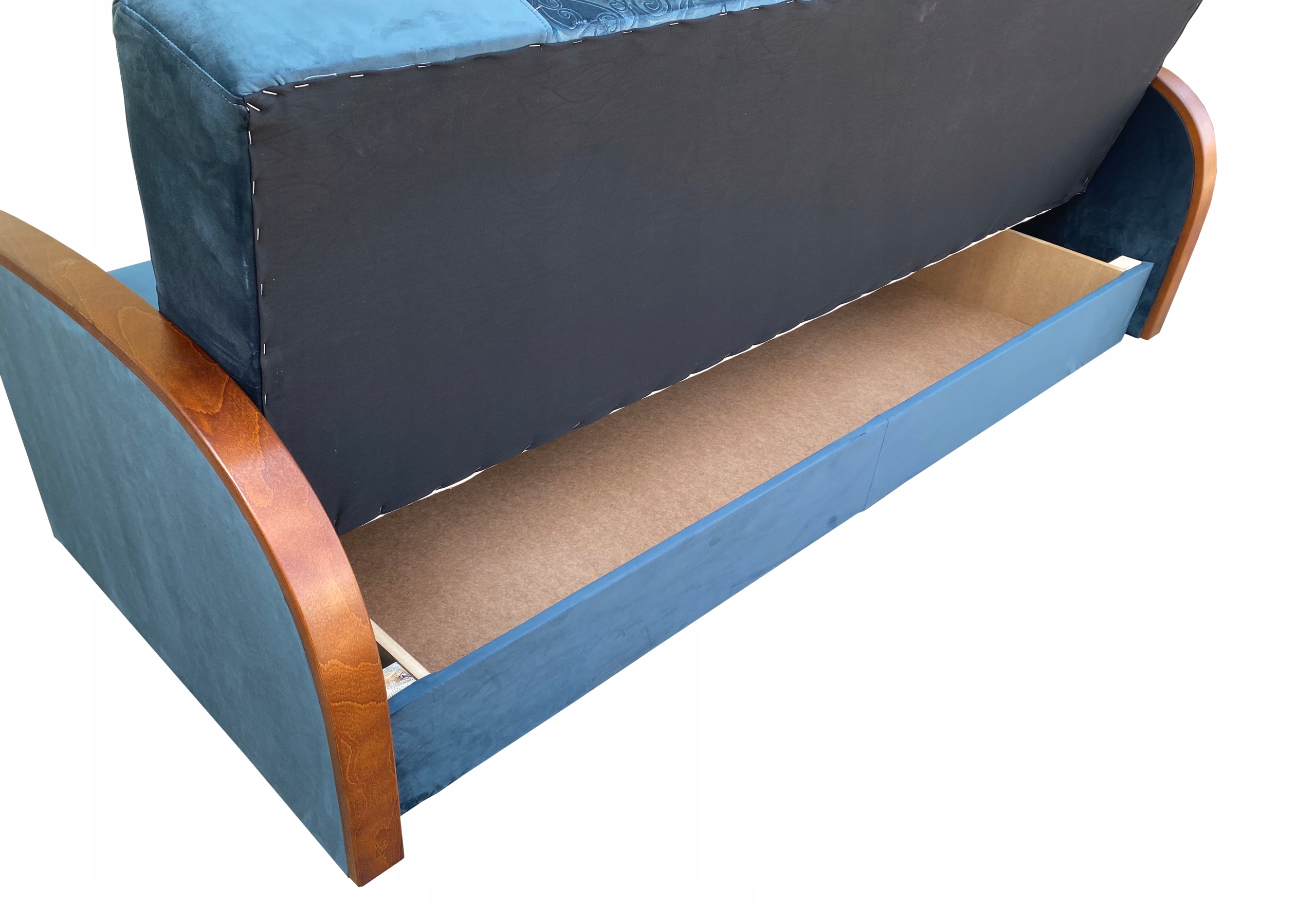 Рамка виготовлена з сухої соснової деревини на шипах, не прибита, тільки прикручена. Короб для постільної білизни виготовлений з дерева та ЛДСП. Дно ящика зроблено з сірої дошки.