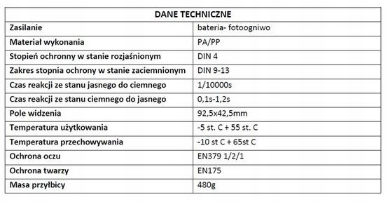 - Має регульований рівень затемнення, фотодатчик регулювання чутливості та перемикач для вибору режиму зварювання