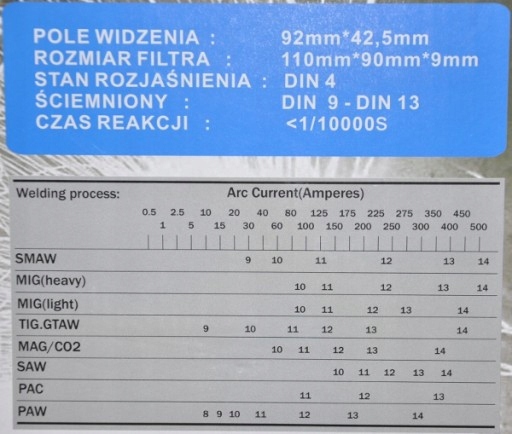 - регулюється ступенем затемнення, регулюванням чутливості до фотокопію та перемикачем, що дозволяє вибрати режим зварювання