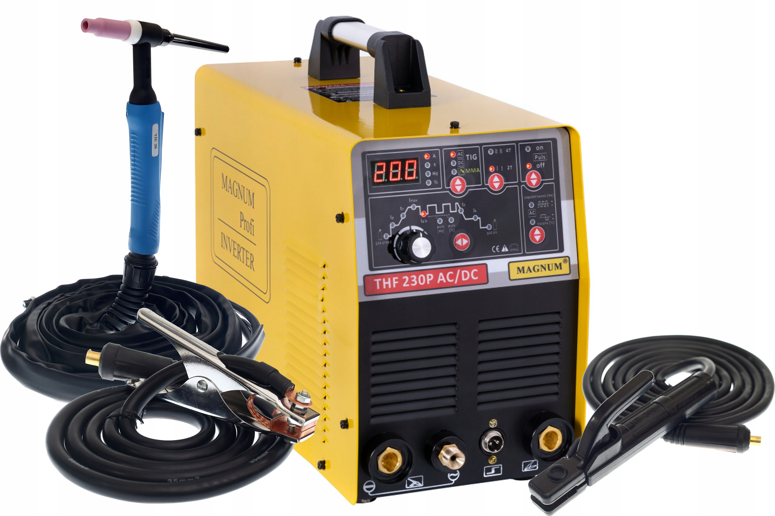 Апарат MAGNUM THF 230P AC/DC - професійний інверторний зварювальний апарат, призначений для ручного електрозварювання методом TIG зі змінним струмом AC b>і постійного струму DC. Апарат також можна використовувати для зварювання MMA електродами з плавким покриттям.